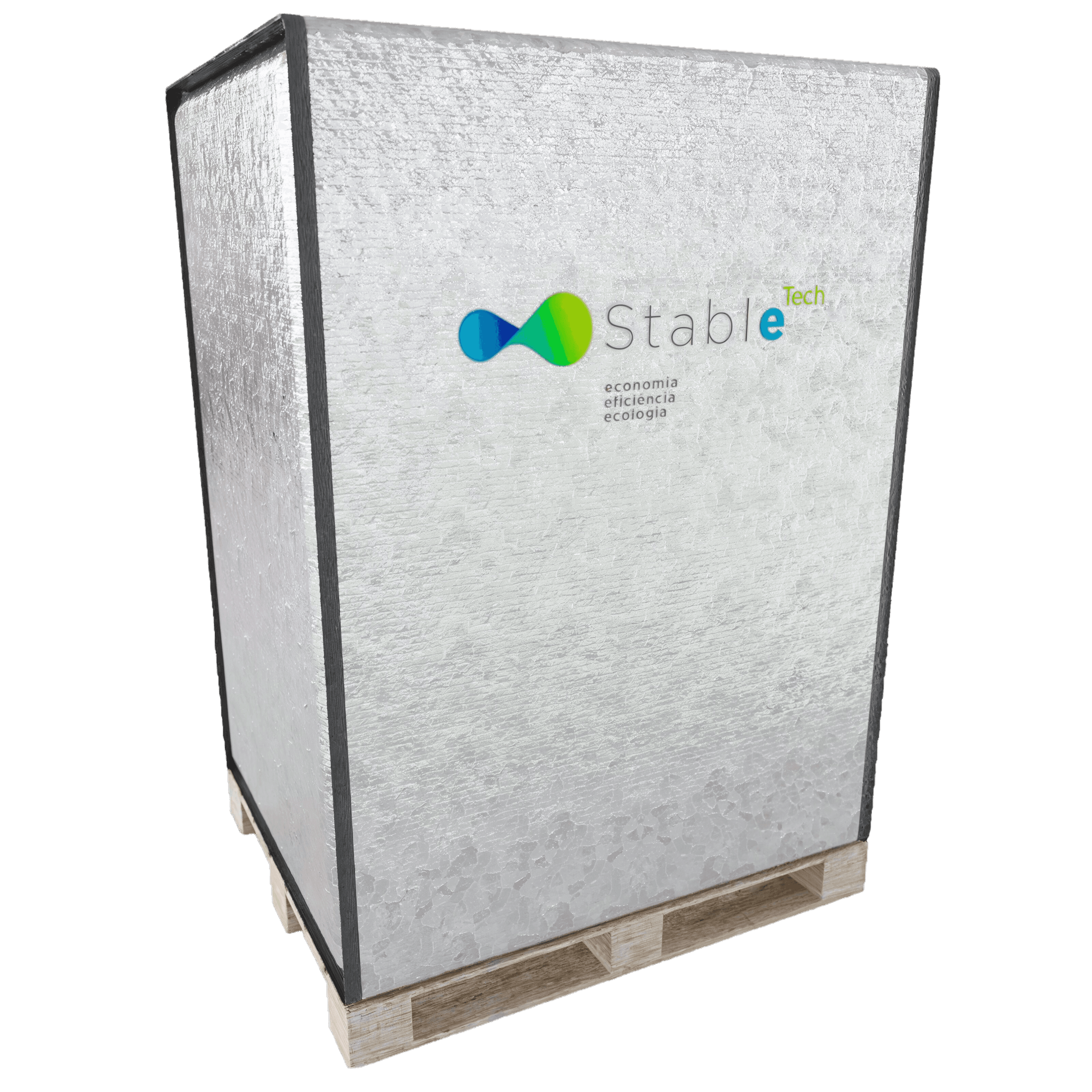Mantas térmicas de baixa emissividade (energia) e alta refletividade de radiação (UV e IV) para proteção de paletes com produtos transportados em curto e médio prazo, nos modais rodoviário e aéreo.